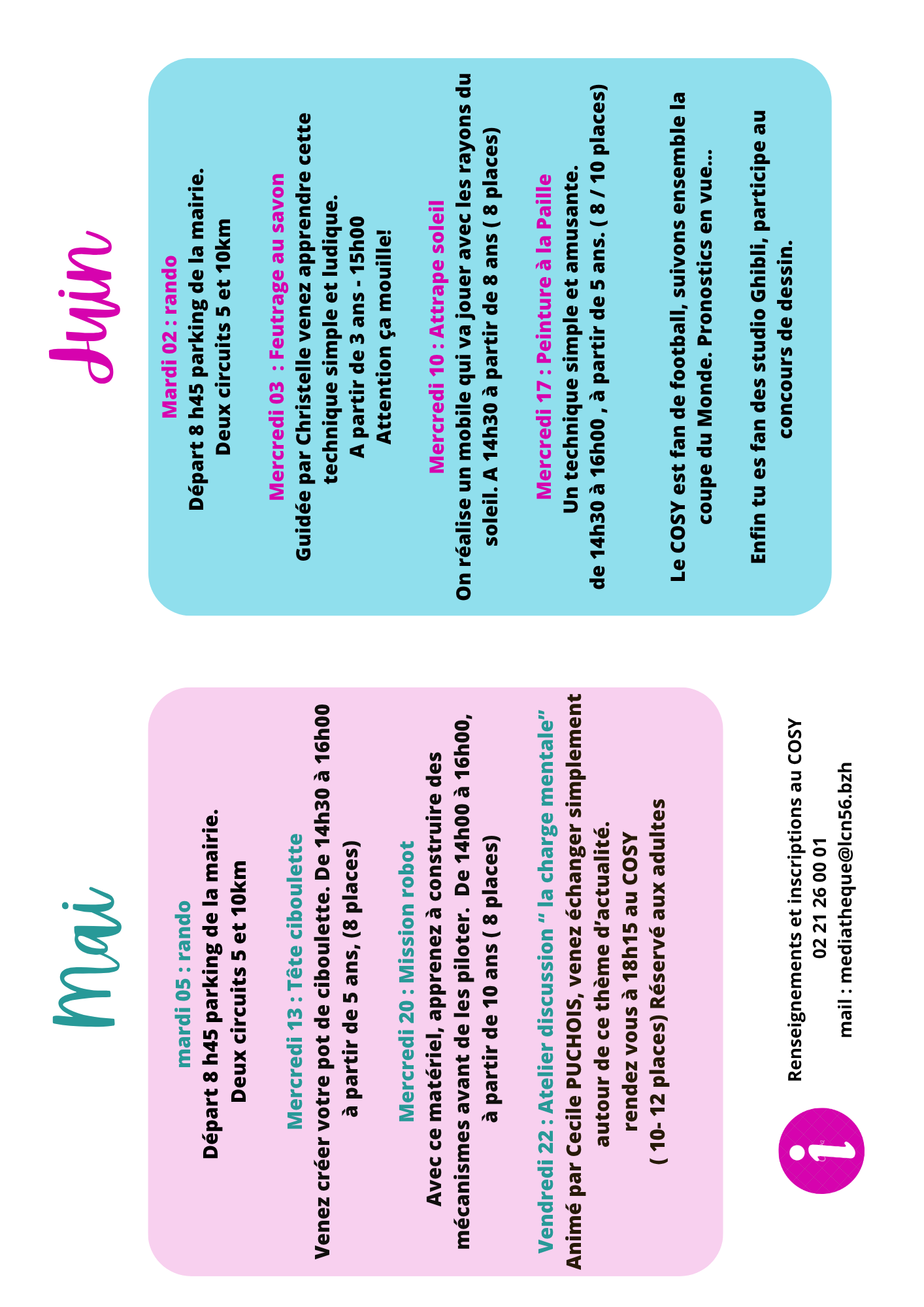 Retrouver le programme de mai juin du COSY.