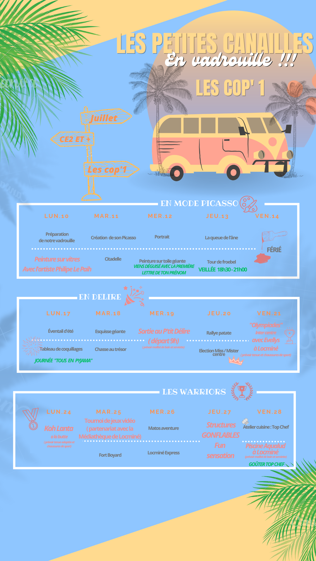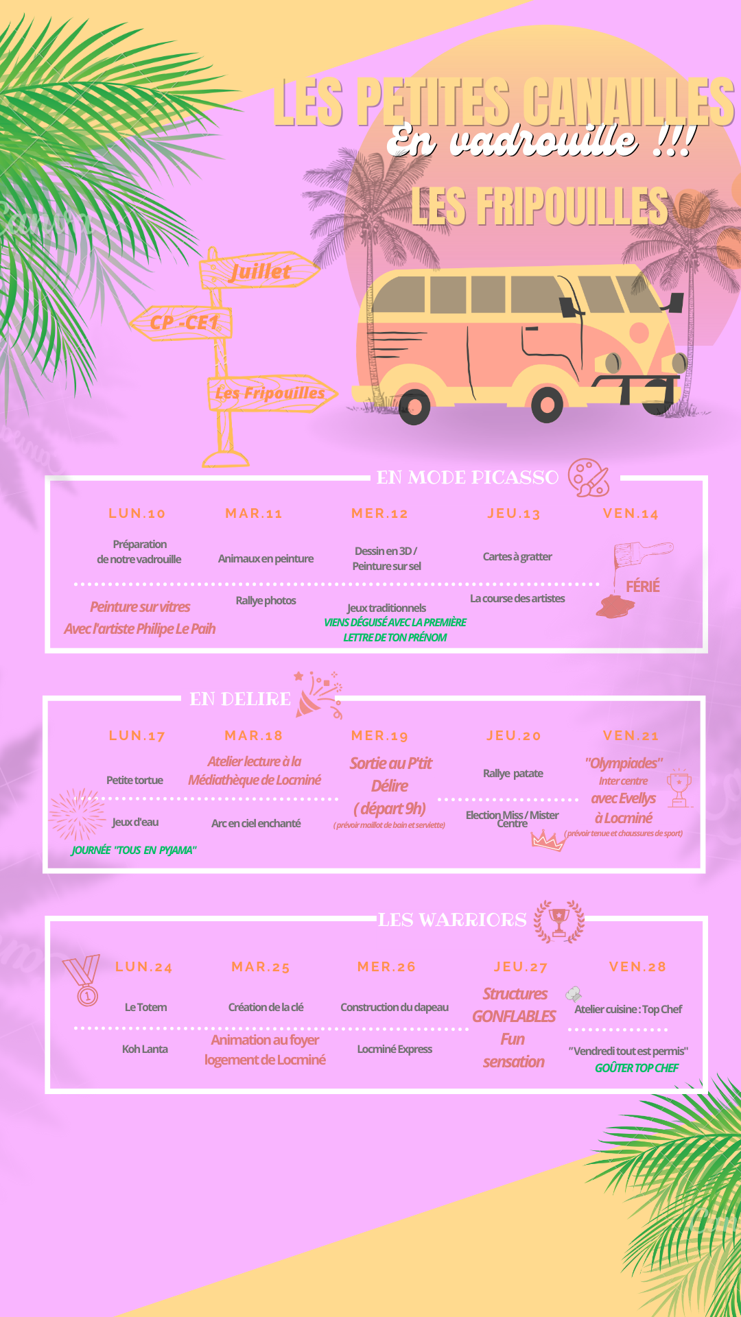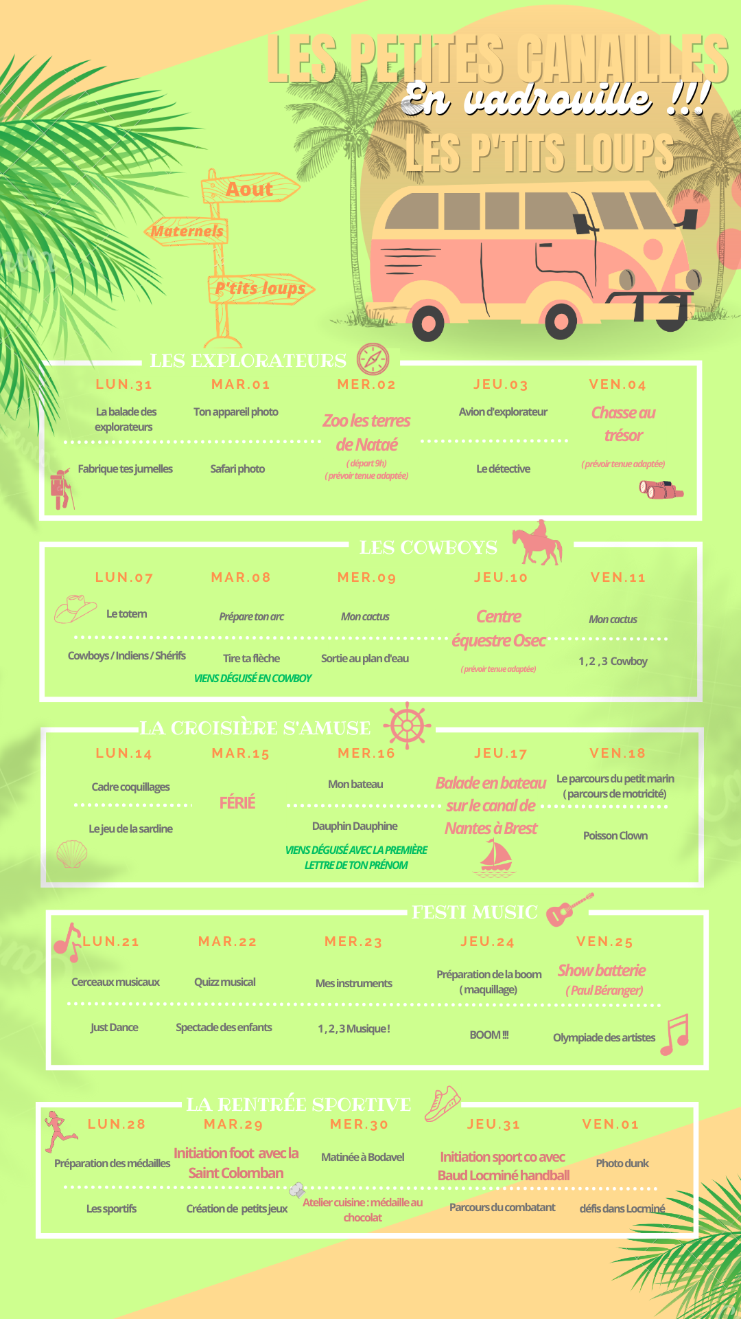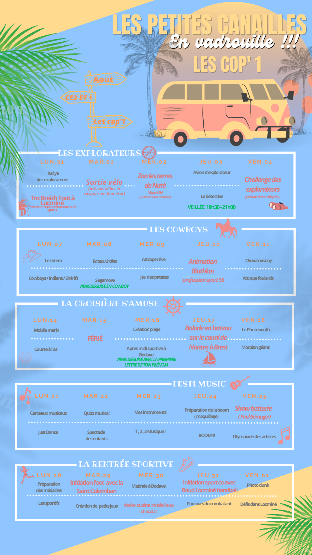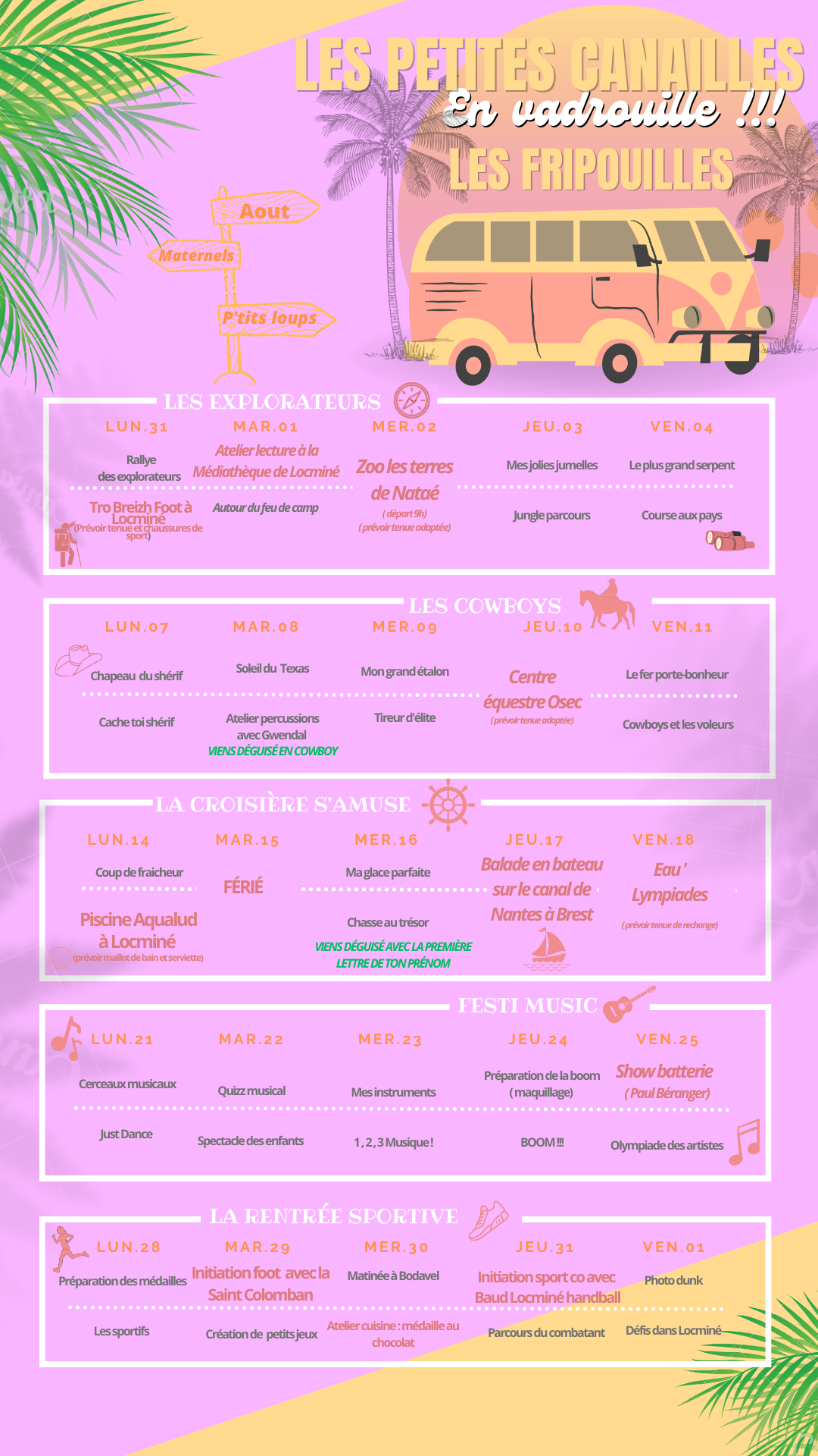 Voici le programme du centre de loisir de Locminé.